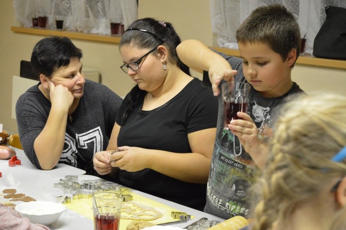 Jako loni a předloni tak i letos jsme nepokazili tradici a sešli jsme se v pondělí 21. listopadu v kulturním domě, kde OÚ uspořádal pro děti i rodiče pečení perníčků. Děti vykrajovaly perníčky, které upečené krásně voněly, takže málokteré děti odolaly pokušení, aby nepřišly do kuchyňky perníčky ochutnávat. Ale napečené perníčky musely vydržet až do pátku, kdy se konalo rozsvícení vánočních stromů, lampionový průvod a dílničky.