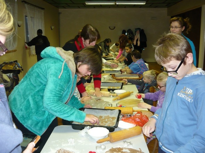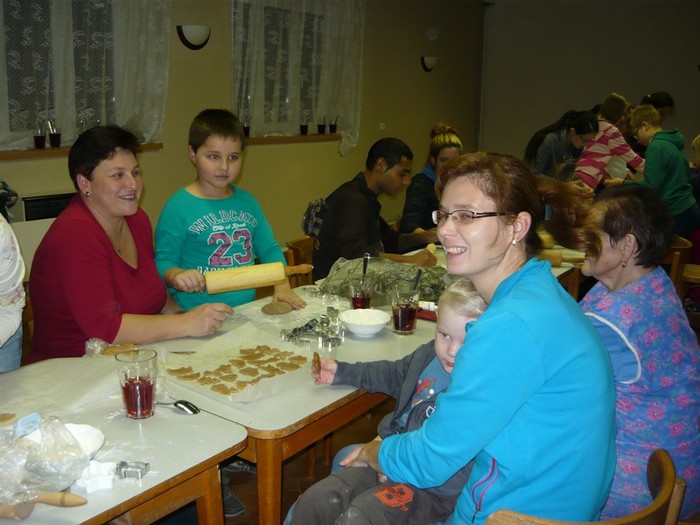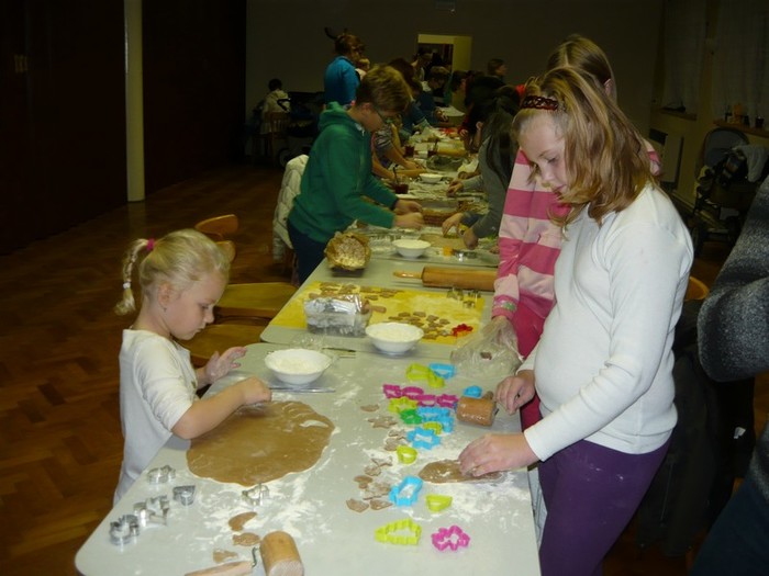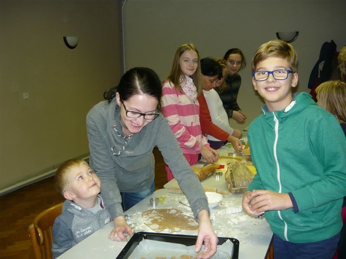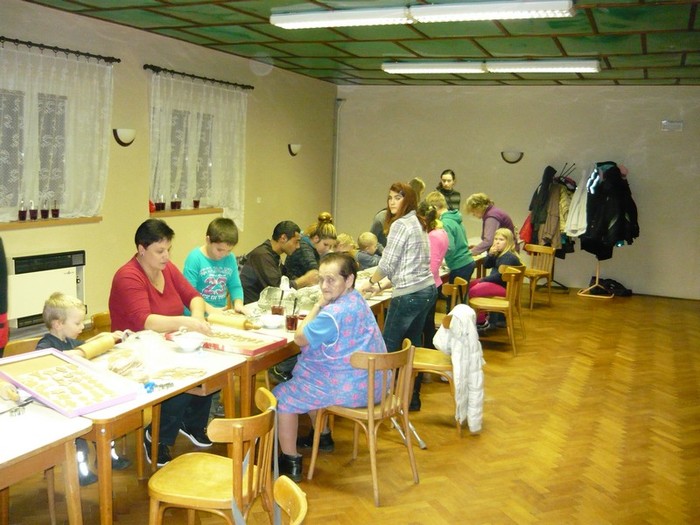 Pečení perníčků k vánočním svátkům neodmyslitelně patří a troufám si říct, že se na něj těší jak děti, tak i dospělí. A proto jsme se sešli v pondělí 23. listopadu 2015 v kulturním domě, kde se předvánoční pečení perníčků konalo. Těsta byla připravená, pracovní prostor také, takže nic nebránilo pustit se s chutí do toho. Přísálí kulturního domu se začalo pozvolna plnit dětmi i dospěláky a každý si našel svoje místo u stolu. Všichni se s nadšením pustili do válení těsta a vykrajování perníčků. Stejně jako v loni se děti mezi sebou chlubily, kdo má hezčí vykrajovátko a maminky i babičky s pýchou přihlíželi a těm nejmenším pomáhali. Atmosféra byla provoněná vůní perníkového koření, upečených perníčků a smíchem dětí. Děkujeme všem, kteří si v tomto předvánočním shonu našli chvilku času, přišli se za námi podívat a přispěli k vytvoření této krásné tradice. Doufáme, že i příští rok se sejdeme v tak velkém počtu a už teď se na Vás všechny těšíme!!!