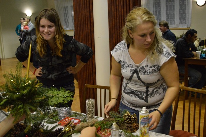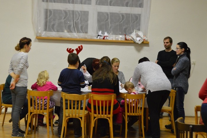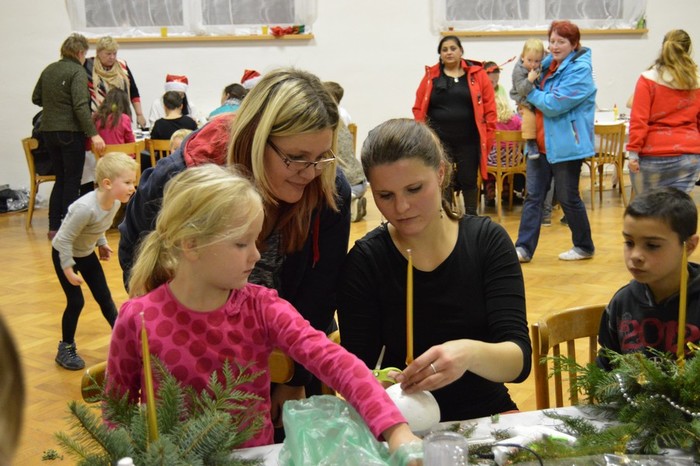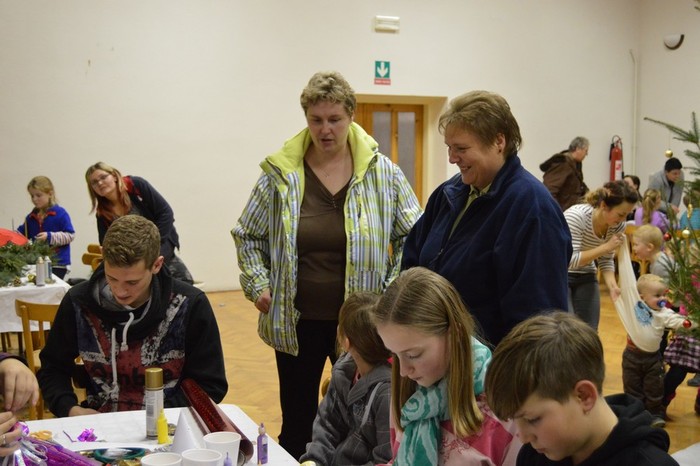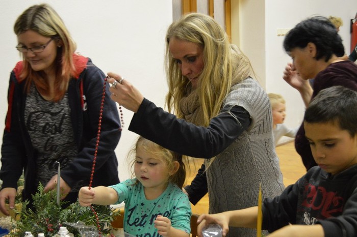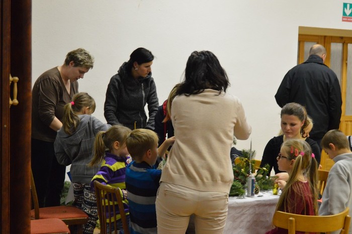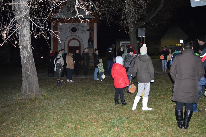 V pátek dne 27. listopadu 2015 vpodvečer se začaly ke kapličce scházet malé i větší postavičky s lampiony a lucerničkami v doprovodu rodičů i prarodičů, aby se zúčastnily společného rozsvícení vánočního stromu u kapličky. Potom všichni společně odešli k budově OÚ, kde byl po odpočítávání rozsvícen i druhý vánoční strom. Děvčata Pavlíkovy a Lucie Němcová za doprovodu kytary zazpívaly krásné vánoční koledy. Na zahřátí se podával pro děti čaj a pro dospělé horký punč. Pak se všichni přesunuli do kulturního domu, kde už byly připravené stoly s různými ozdobami, smrkovými větvičkami, skleněnými svícínky a upečenými perníčky. Děti nevěděly, u kterého stolu se mají zastavit nejdříve, tak je všechno lákalo. Některé děti si napřed všechno obešly a pozorně prohlédly a pak se pustily do práce, často i za pomoci rodičů.