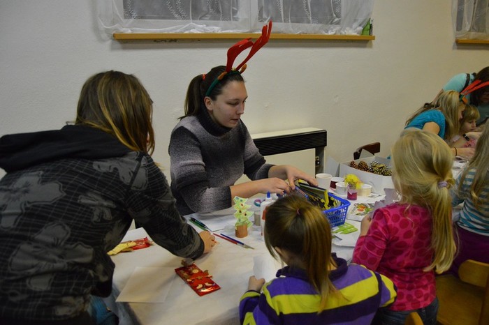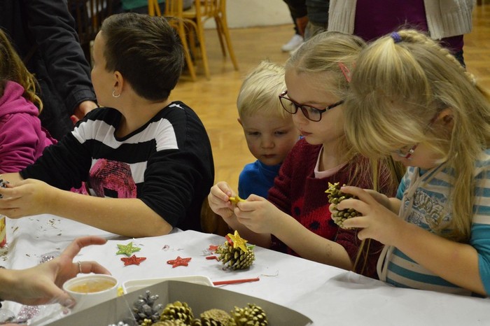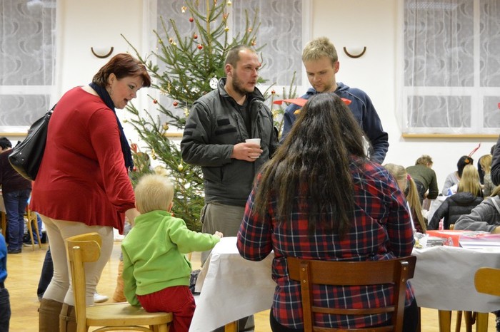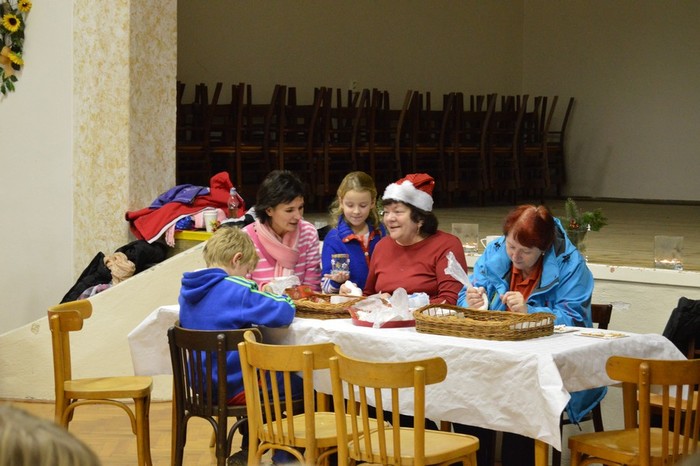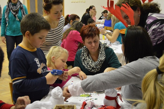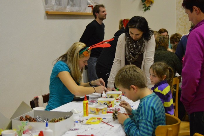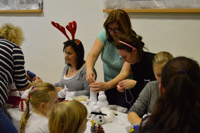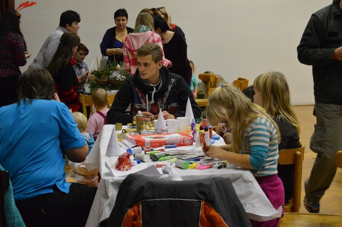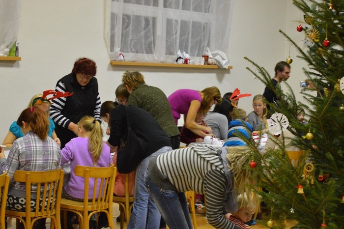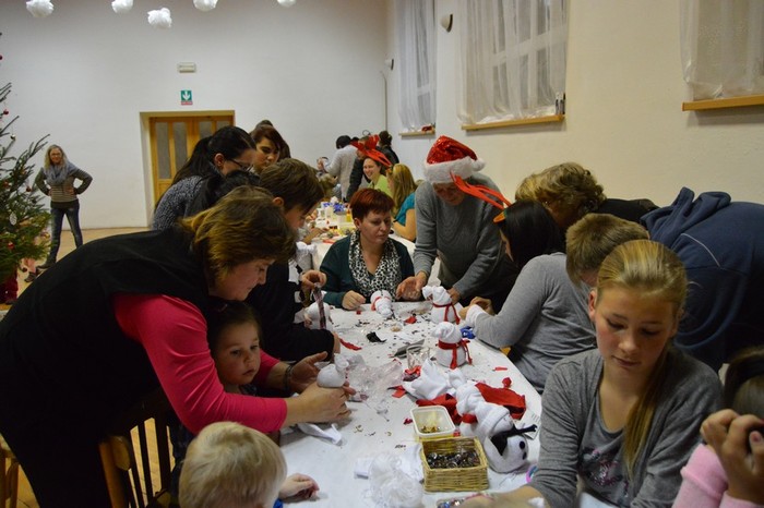 Mohly si vyrobit svícínky z větviček, ozdobit skleněné svícínky, vytvořit bílé sněhuláčky z ponožek, ozdobit šišky a také nazdobit perníčky bílou polevou. Celou akci připravilo zastupitelstvo obce za pomoci našich šikovných děvčat, které dětem také pomáhaly. Sešlo se zde více dětí i dospělých než loni a také více přespolních. Jak jsme slyšeli, moc se jim u nás líbilo, takže příštím rokem se k nám zase vypraví. Všichni si užívali milou předvánoční atmosféru a nejvíce byly spokojené děti, které si domů odnášely plné náruče vlastnoručně vyrobených vánočních ozdob. Děkujeme všem, kteří pomáhali s přípravami a příští rok se na VÁS všechny opět moc TĚŠÍME!!!